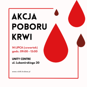 On the initiative of one of our Tenants Autodesk – on the 14th of July (Thursday) between 09:00 and 13:00, the blood bus of the Regional Blood Donation and Blood Treatment Center in Krakow will be available at UNITY CENTRE (only for people who speak Polish).