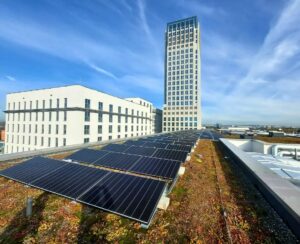 On the roof of the UNITY Square One building, the installation of photovoltaic panels has been completed!