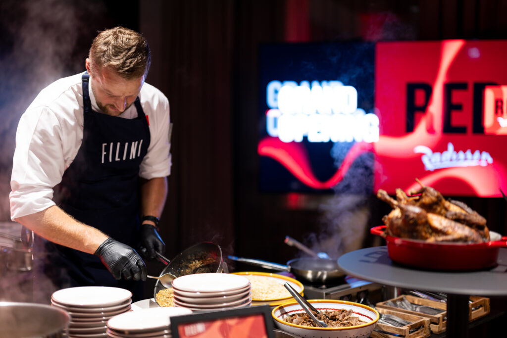 Radisson RED zaznaczył swój charakter dzięki niesamowitym atrakcjom w trakcie wydarzenia – niesamowitym oświetleniem, występami muzyków i akrobatów, oficjalnym przecięciem wstęgi czy stacjami live cooking.